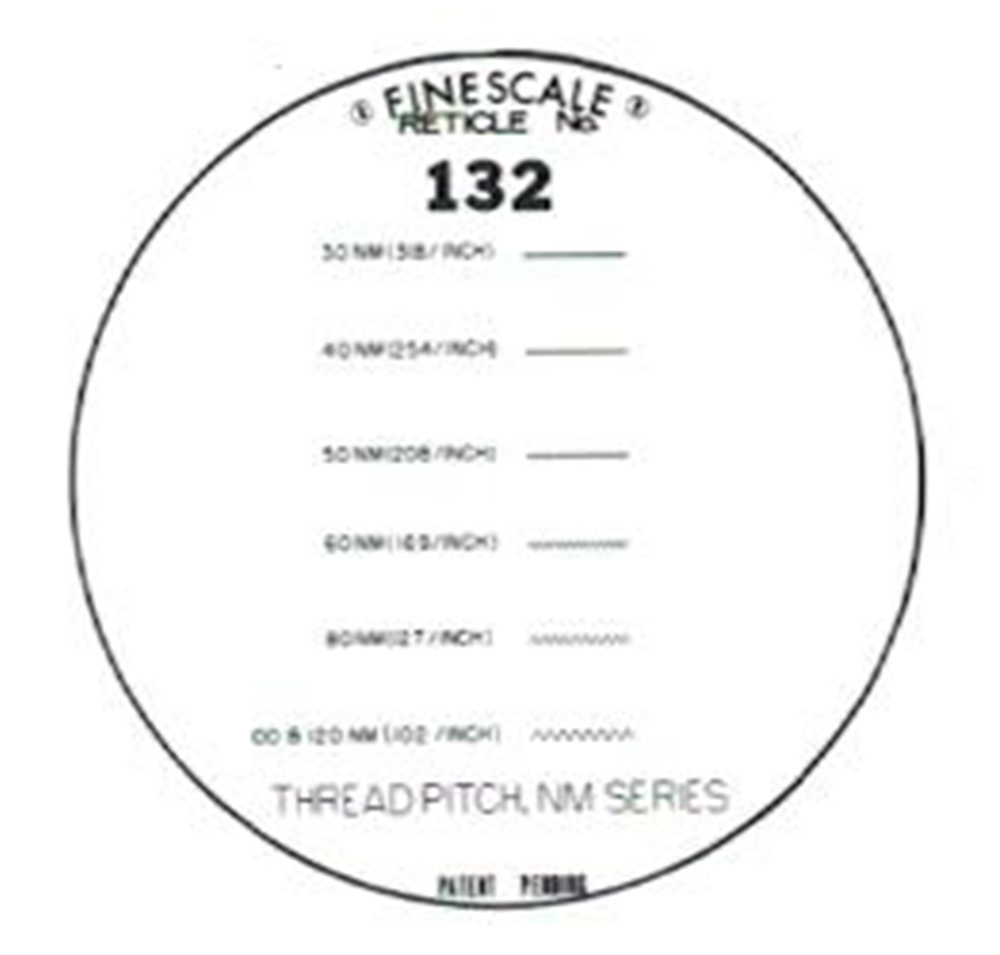 Reticle 132: Thread Pitch, NM series. For checking threads in the new “miniature” series. See Reticle No. 135 for others.